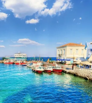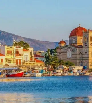 Departing from Kalithea's Marina, we head to Aegina’s port, known for its neoclassical houses and vibrant atmosphere.