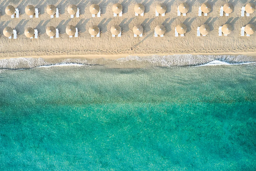 Domes Noruz Kassandra is a luxury, adults-only lifestyle Resort in Halkidiki, that features a beach club with rooms with access to a white sandy blue flag awarded beach with crystal clear turquoise water. Here, one can indulge in the finer things in life in this glamorous seaside setting.