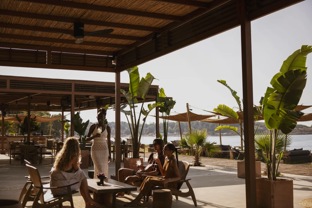 Zamāna, brings Remo Masala’s creative vision to life in Chania, just a short walk from Domes Zeen Chania. On Aptera’s quiet shore, mornings begin with global-inspired brunches and barefoot dips, afternoons pulse with Afro and ethnic house sets, and golden-hour cocktails unfold under striped parasols.